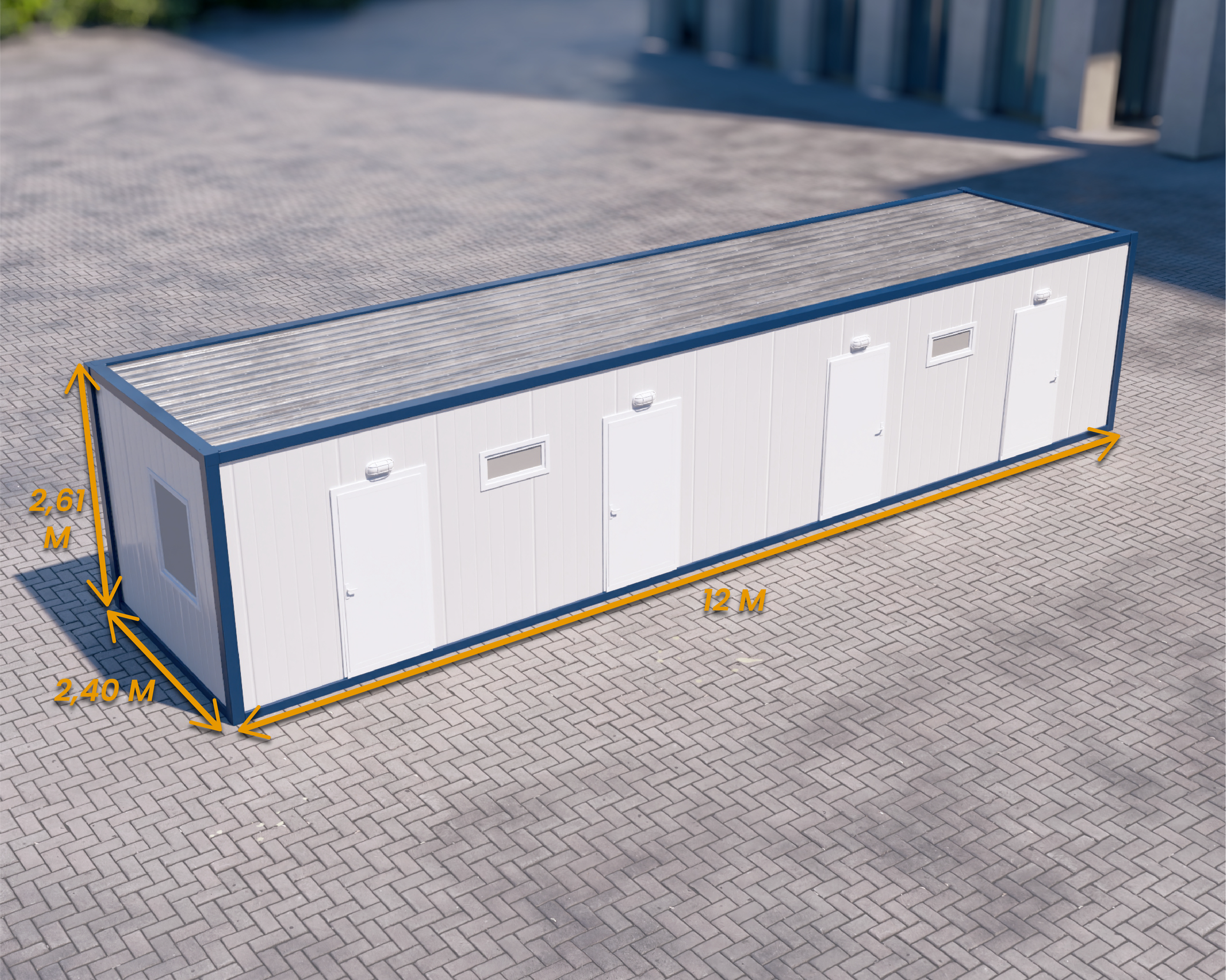 AK-15 Çok Amaçlı Şantiye Konteyneri – 28.8 m² – 12 Metre, 4 Odalı ve 2 Paylaşımlı Banyolu Mega Ünite