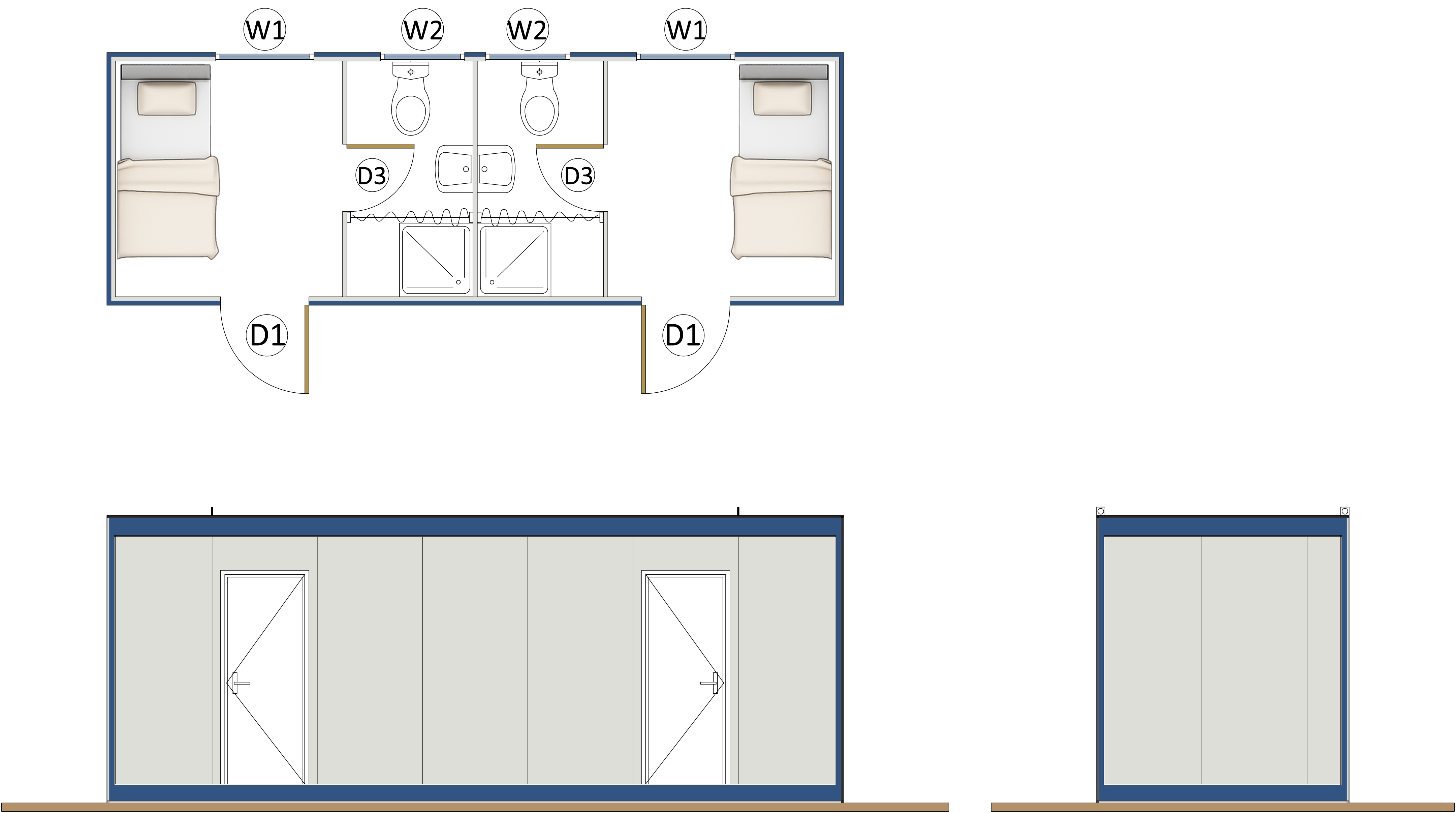 AK-12, şantiye sahasında "yönetici" veya "uzman personel" konaklaması için tasarlanmış en prestijli modellerden biridir. Ortak banyo kullanımından kaynaklanan hijyen ve zaman kayıplarını tamamen ortadan kaldırır. İki personeli tek bir modülde, ancak tamamen bağımsız birer süit konforunda barındırmak, hem saha yerleşimini optimize eder hem de çalışan memnuniyetini zirveye taşır. Uzun süreli projelerde yüksek verimlilik için en ideal yatırımdır.